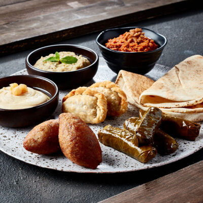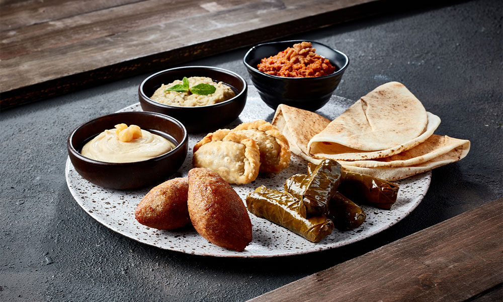 Hommos, Moutabbal, Mouhamara, Warak inab, Stuffed Kibbeh, Sambousek