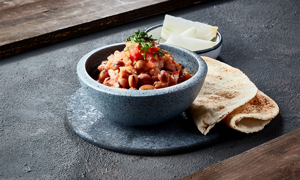 Whole fava beans seasoned with spices, fresh lemon juice, tomatoes, onions, parsley and virgin olive oil.