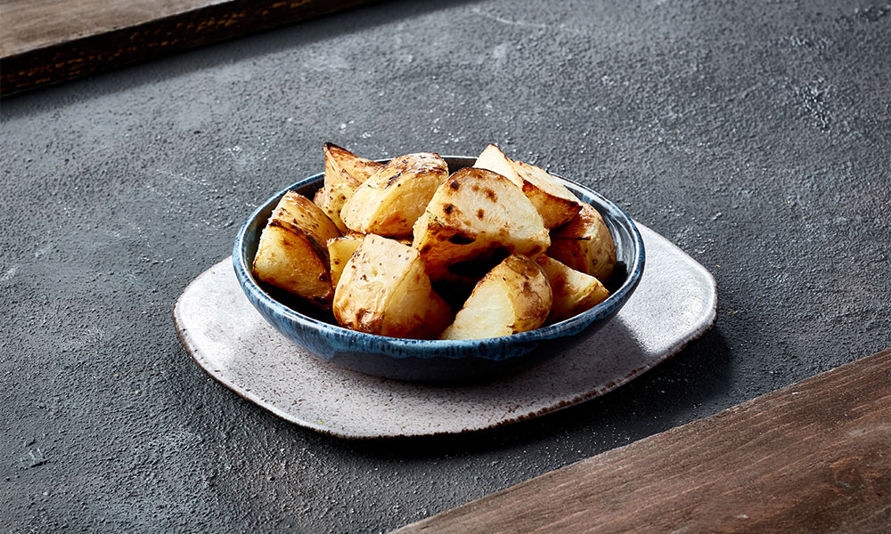 Diced potatoes charcoal grilled