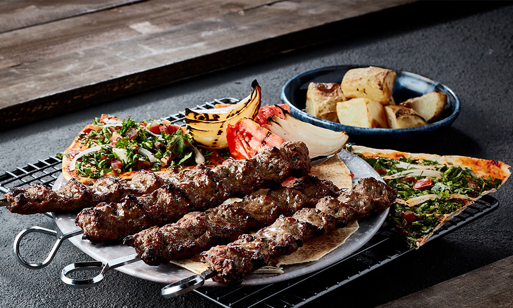 4 skewers of ground lean meat, kneaded with the house-blend spices, onions and chopped parsley served with grilled potatoes