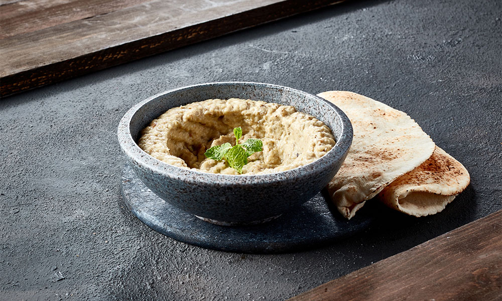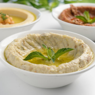 Fresh eggplant grilled over charcoal, lightly mashed with tahini & freshly squeezed lemon juice topped with virgin olive oil.