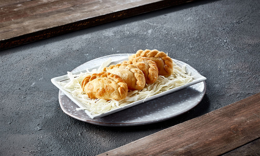 Pocket house made dough stuffed with flavorful seasoned meat mixed with pine nuts and house blend spices