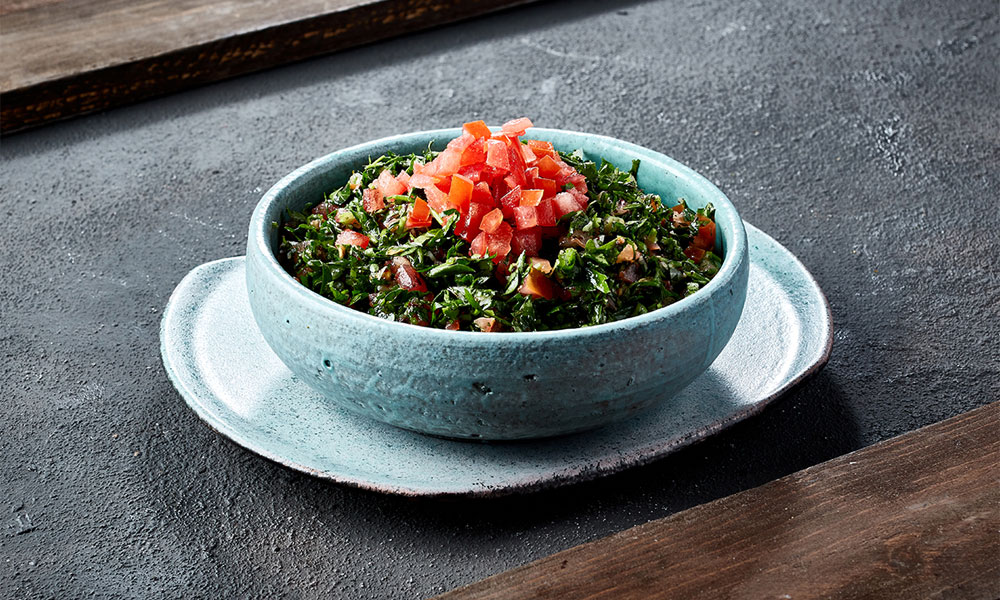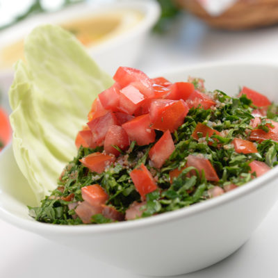 Fresh parsley, tomatoes, cracked wheat, onions, freshly squeezed lemon juice and virgin olive oil.